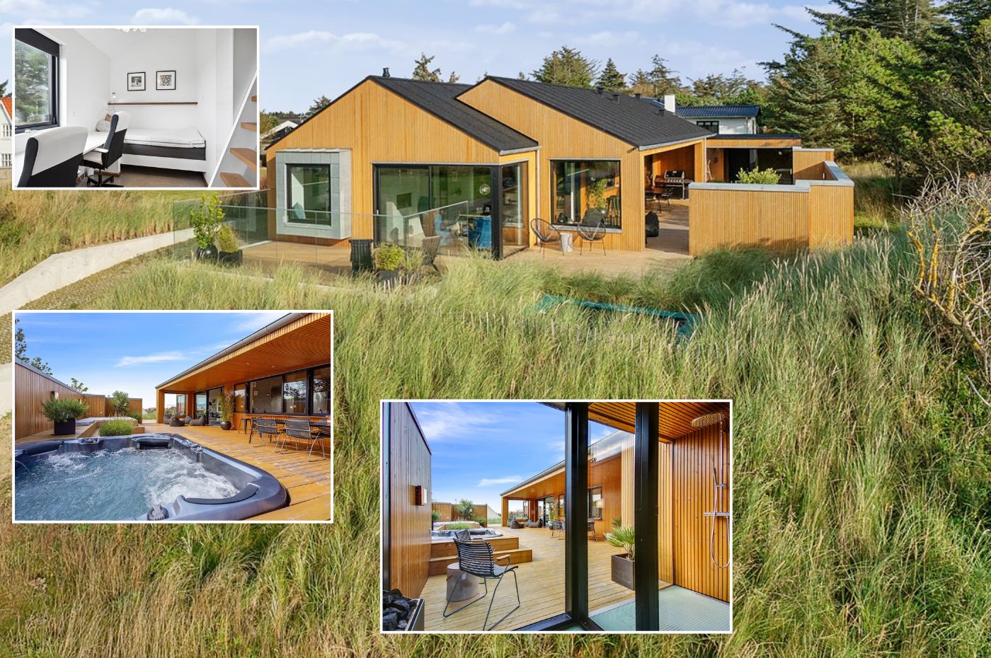 Hier ist ein Haus, das nicht schreit – es flüstert. Niedrig gelegen, mit Holz verkleidet und breiten Fenstern, die sich zu Dünen und Meer öffnen. Schöne Böden, versetzte Ebenen und warme Holztöne schaffen eine ausgewogene Ästhetik, und die versetzten Außenterrassen gleiten wie Stufen durch die Landschaft. Ein Ort für Nachdenklichkeit, langsame Tage und Kaffee mit Horizont.